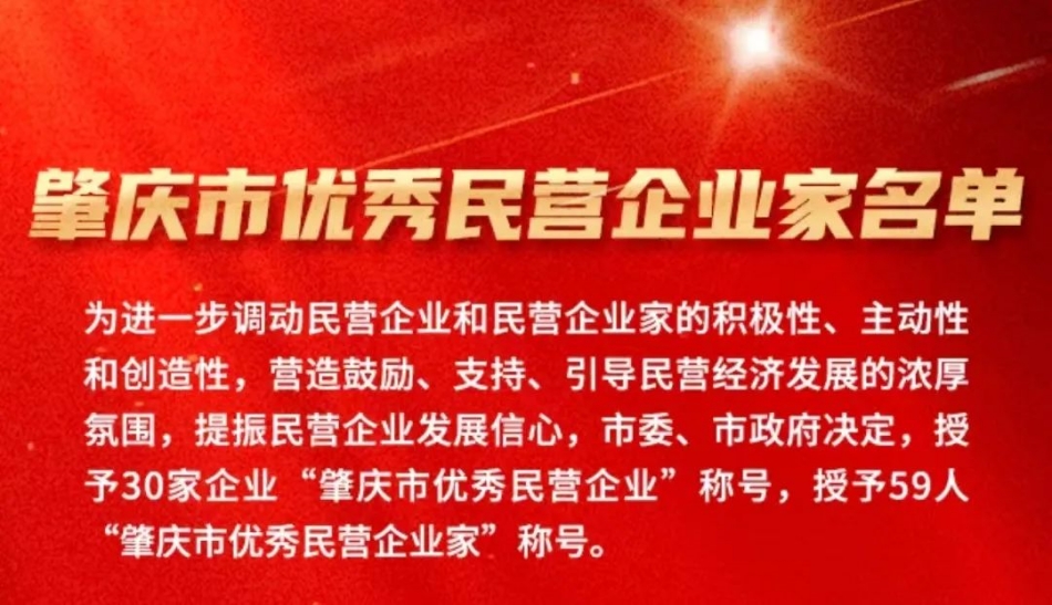 為進一步調(diào)動民營企業(yè)和民營企業(yè)家的積極性、主動性和創(chuàng)造性,營造鼓勵、支持、引導民營經(jīng)濟發(fā)展的濃厚氛圍,提振民營企業(yè)發(fā)展信心,市委、市政府決定,授予30家企業(yè)“肇慶市優(yōu)秀民營企業(yè)”稱號,授予廣東健奧科技有限公司董事長石榮等59人“肇慶市優(yōu)秀民營企業(yè)家”稱號。