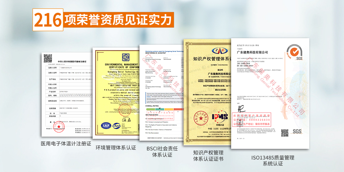 不斷研發(fā)創(chuàng)新,企業(yè)已經(jīng)獲得216項(xiàng)榮譽(yù)資質(zhì),并且通過(guò)了ISO 13485 、ISO 45001、 ISO 14001、GB/T  29490知識(shí)產(chǎn)權(quán)管理體系認(rèn)證、BSCI社會(huì)責(zé)任體系認(rèn)證