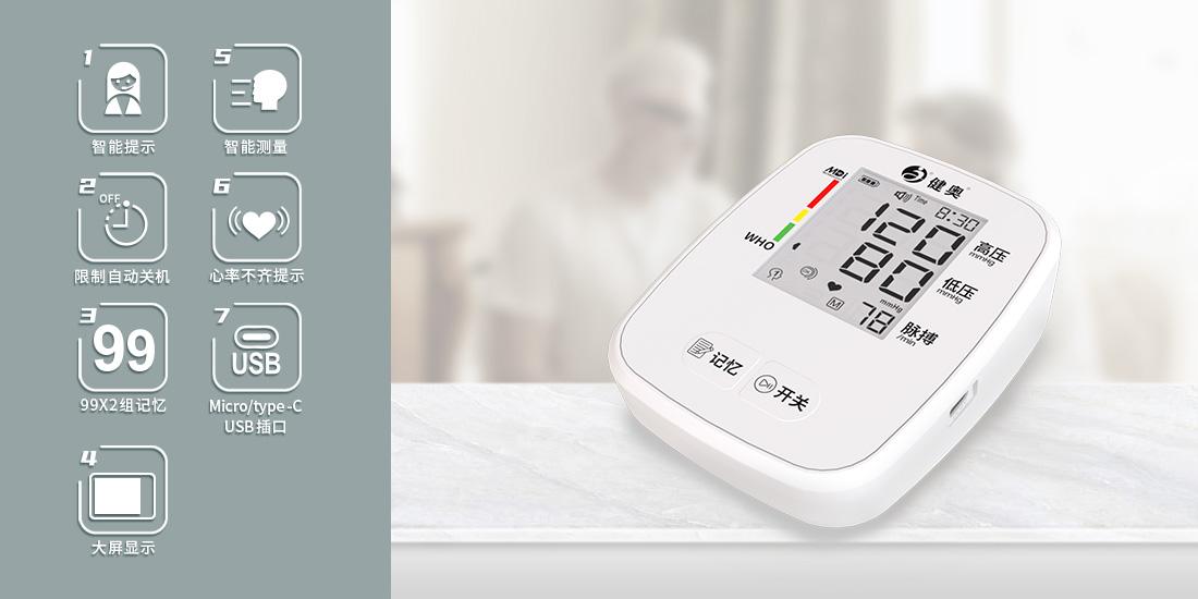 智能芯片,多重技術(shù)升級(jí), 99組記憶數(shù)據(jù)精確掌握血壓變化