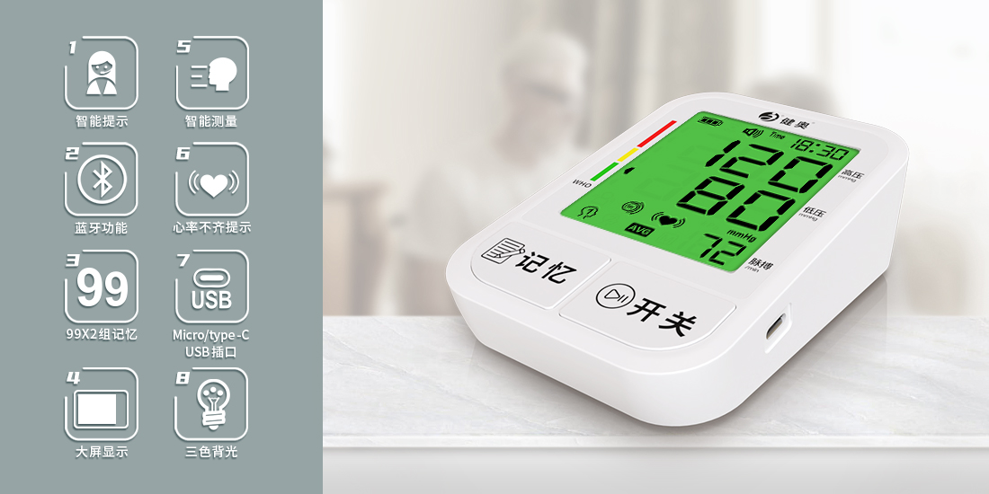 智能芯片,多重技術(shù)升級(jí), 99組記憶數(shù)據(jù)精確掌握血壓變化